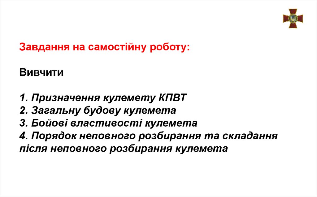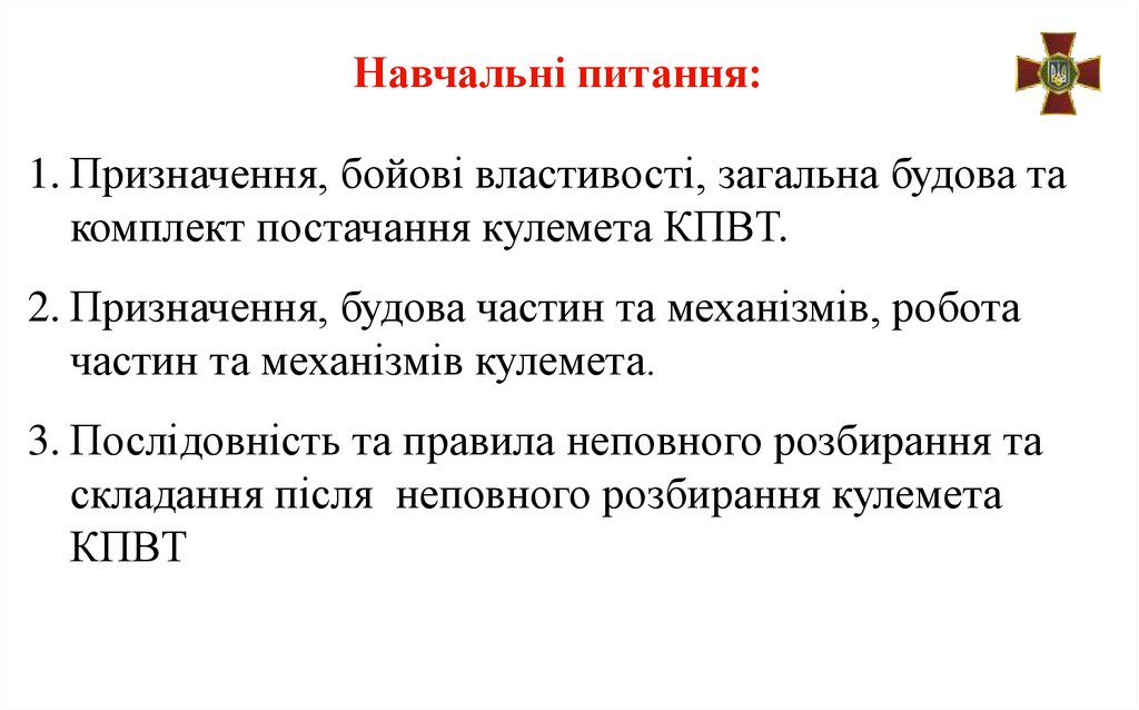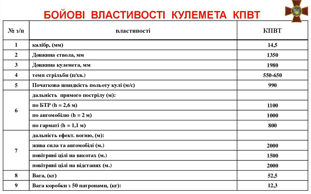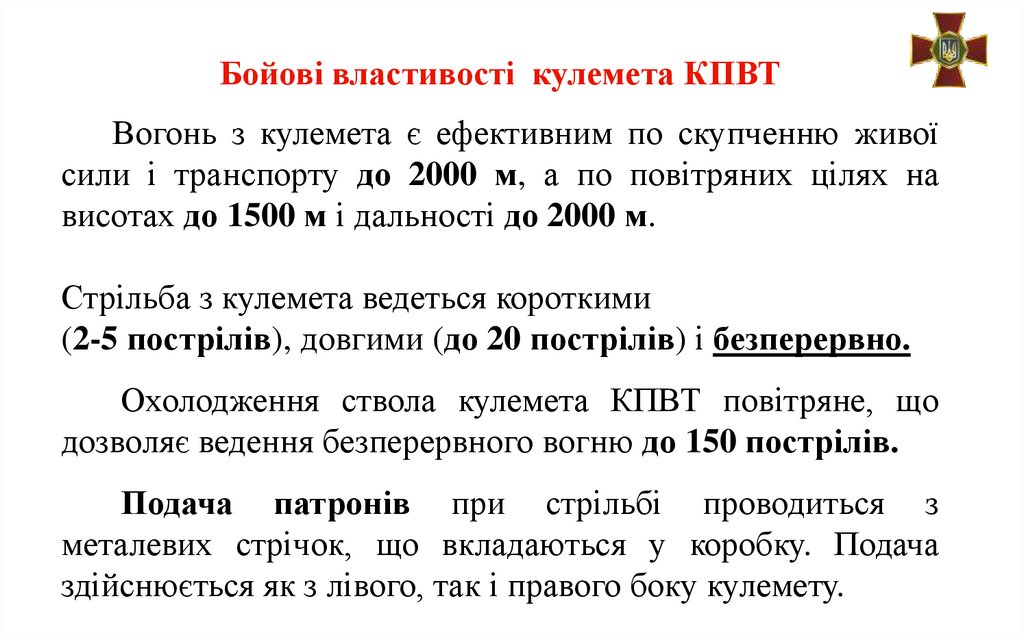 БОЙОВІ ВЛАСТИВОСТІ КУЛЕМЕТА КПВТ№ з/п