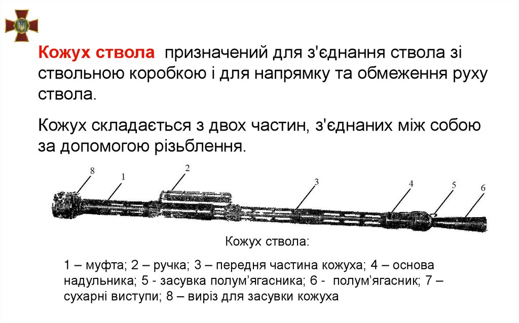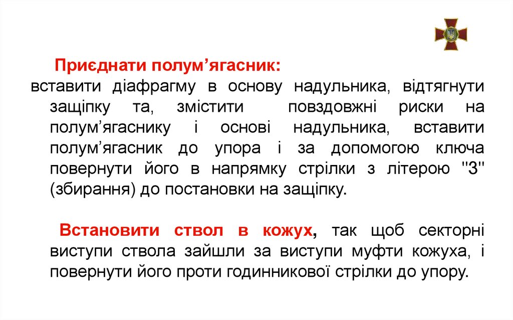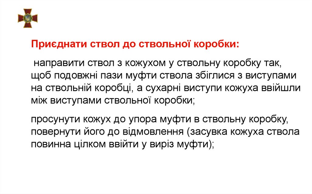 Приєднати ствол до ствольної коробки:направити ствол з кожухом у ствольну коробку так,