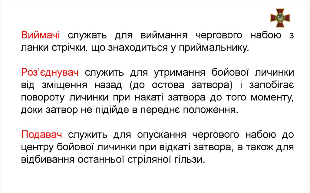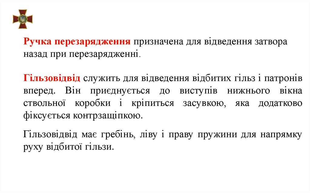ручкою перезаряджання відвести затвор у заднє положення і поставити
