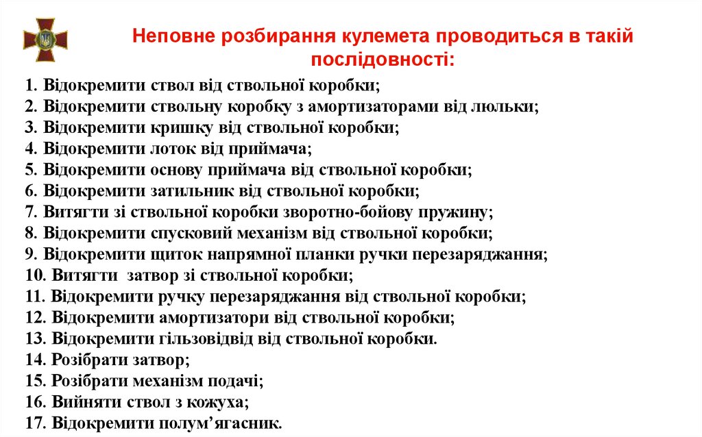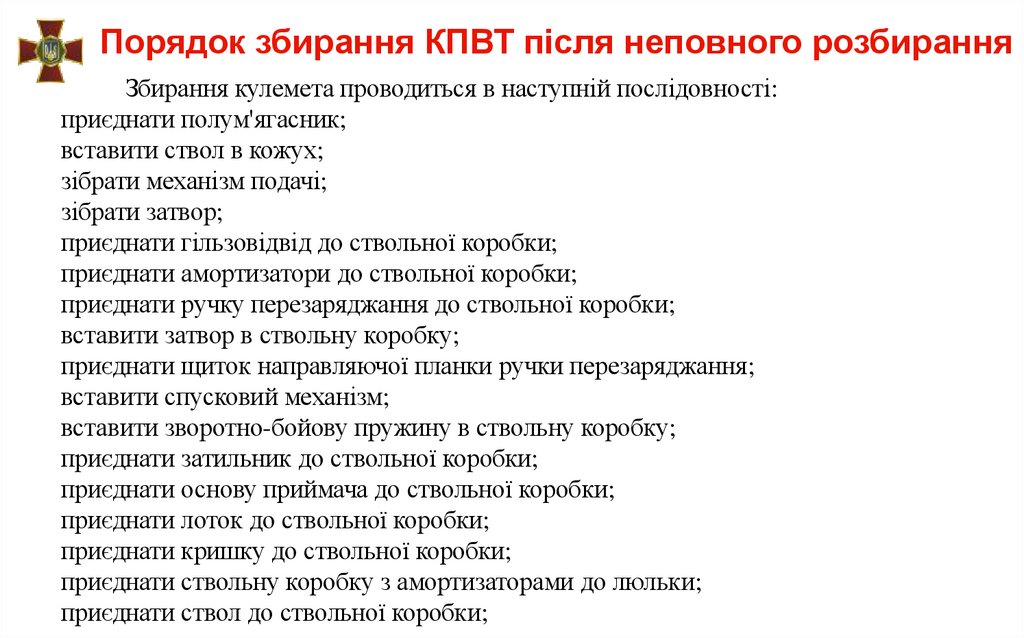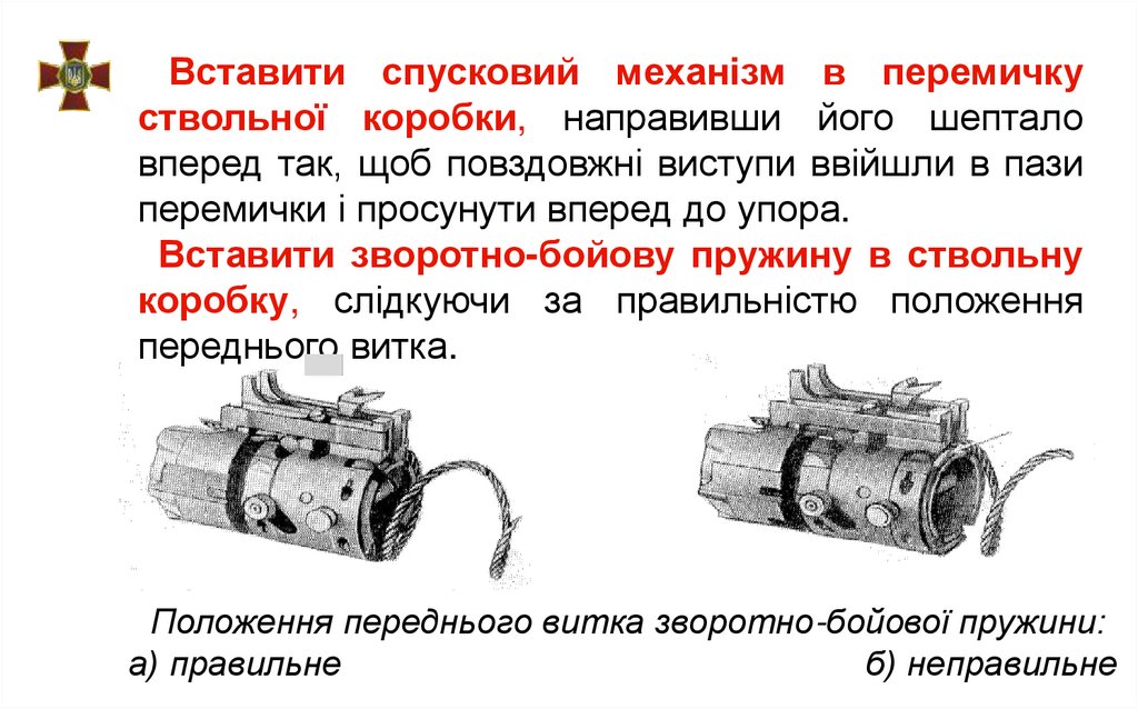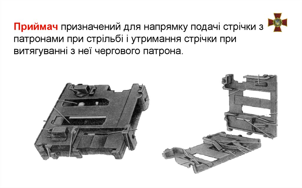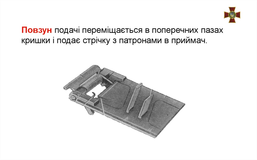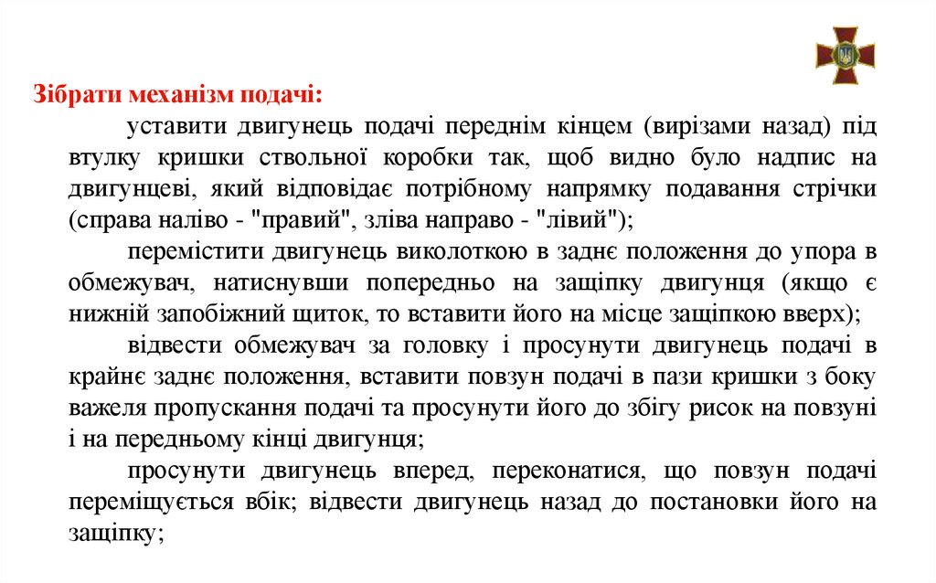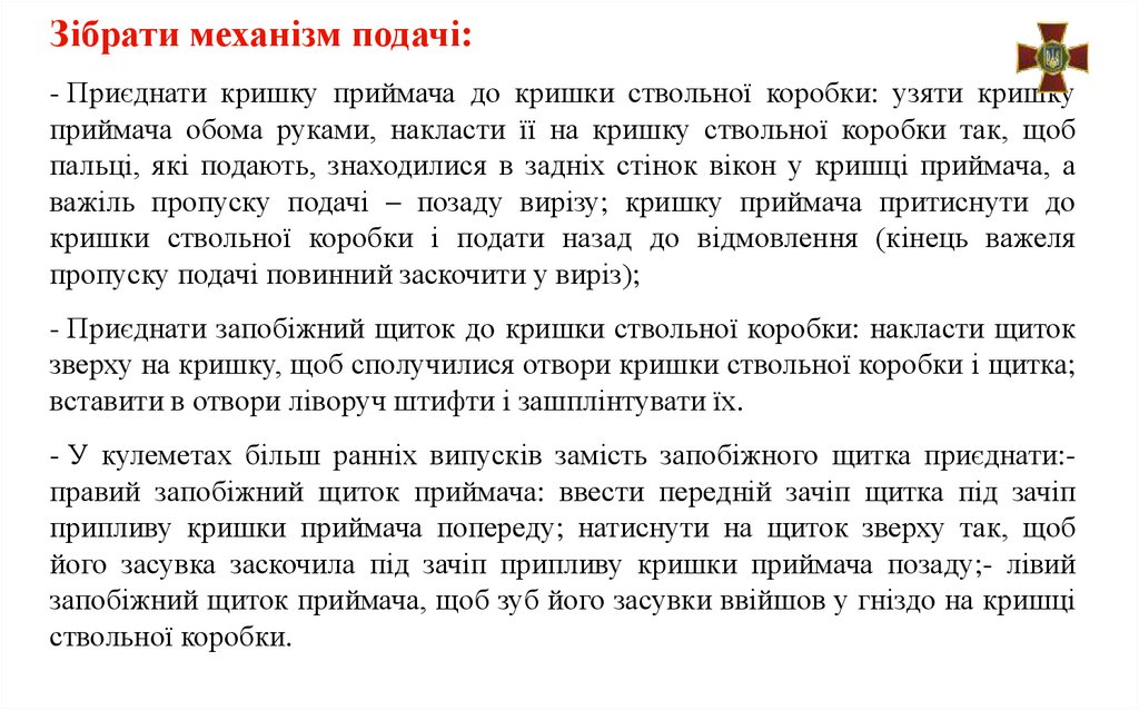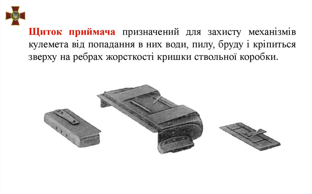 - У кулеметах більш ранніх випусків замість запобіжного щитка приєднати:правий запобіжний щиток приймача: ввести передній зачіп щитка під зачіп
