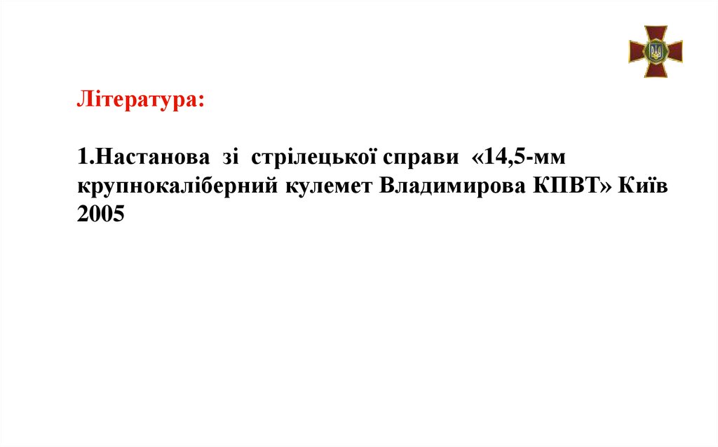 Література:1.Настанова зі стрілецької справи «14,5-мм