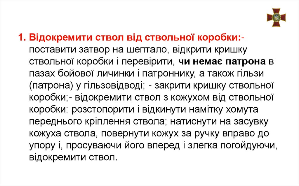 повернути так, щоб вона стала повздовж ствольної коробки;