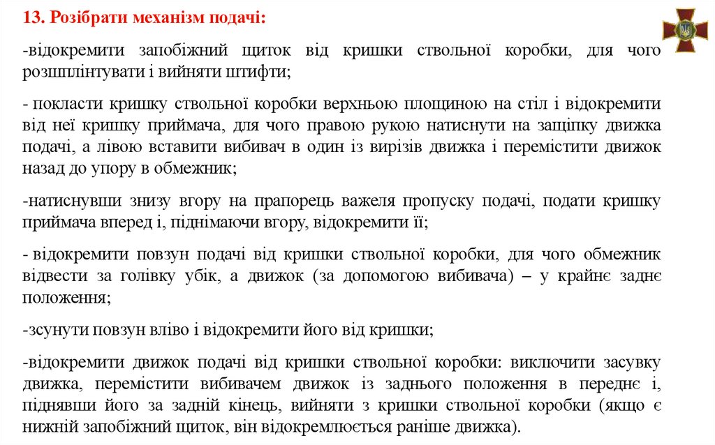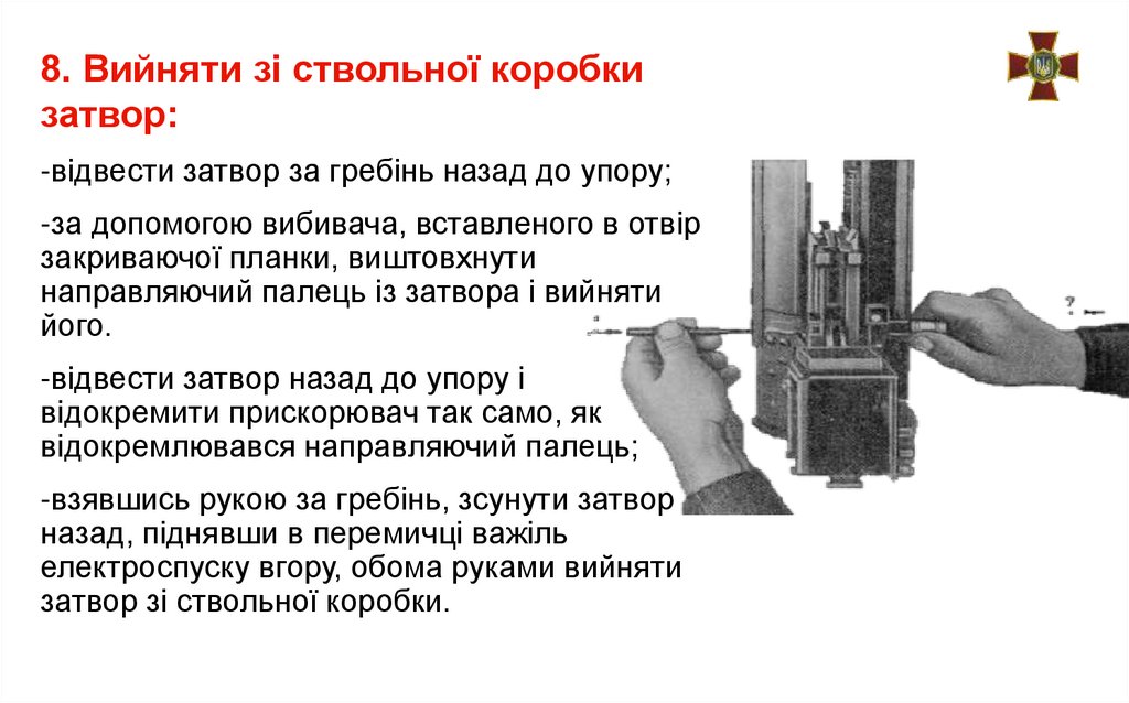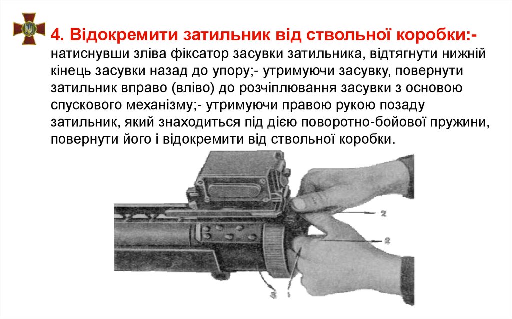 кришки ствольної коробки і подати назад до відмовлення (кінець важеля