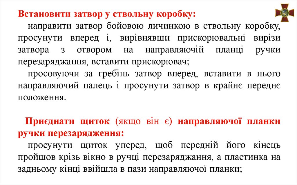Встановити затвор у ствольну коробку:направити затвор бойовою личинкою в ствольну коробку,