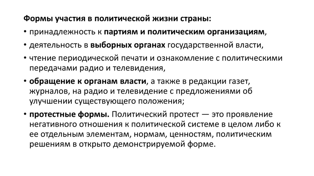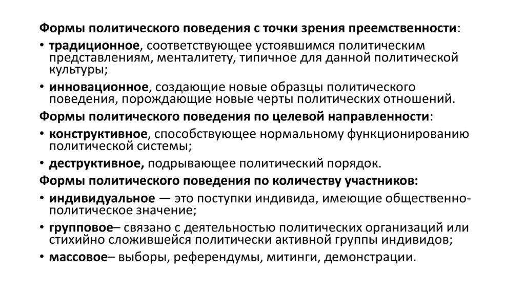 • Политическое поведение – политические установки, типы,формы, стили, образцы общественно-политической деятельности