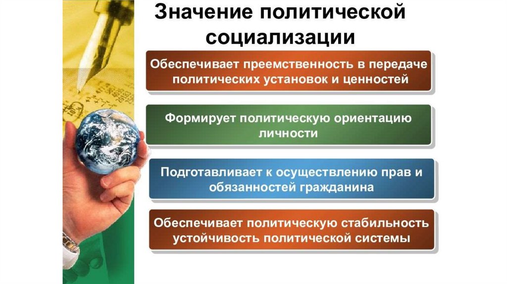эффект, воздействуя на сознание, убеждения и поведение индивидов, общностей, институтов. Политическое