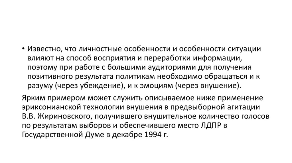 • Известно, что личностные особенности и особенности ситуациивлияют на способ восприятия и переработки информации,