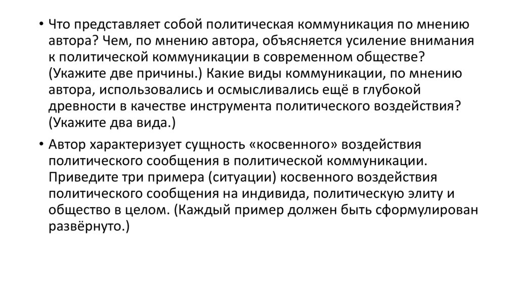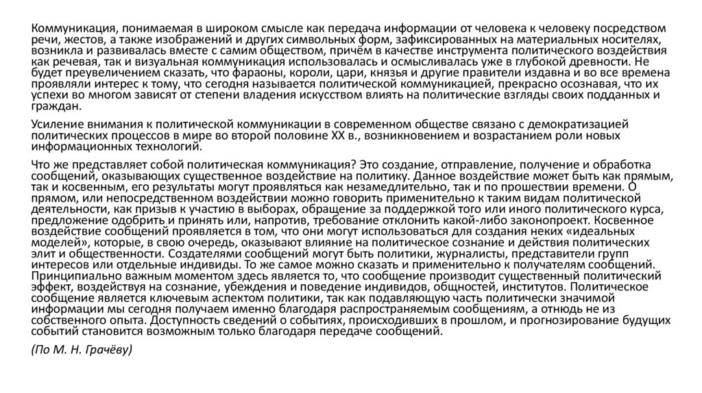 • Что представляет собой политическая коммуникация по мнениюавтора? Чем, по мнению автора, объясняется усиление внимания