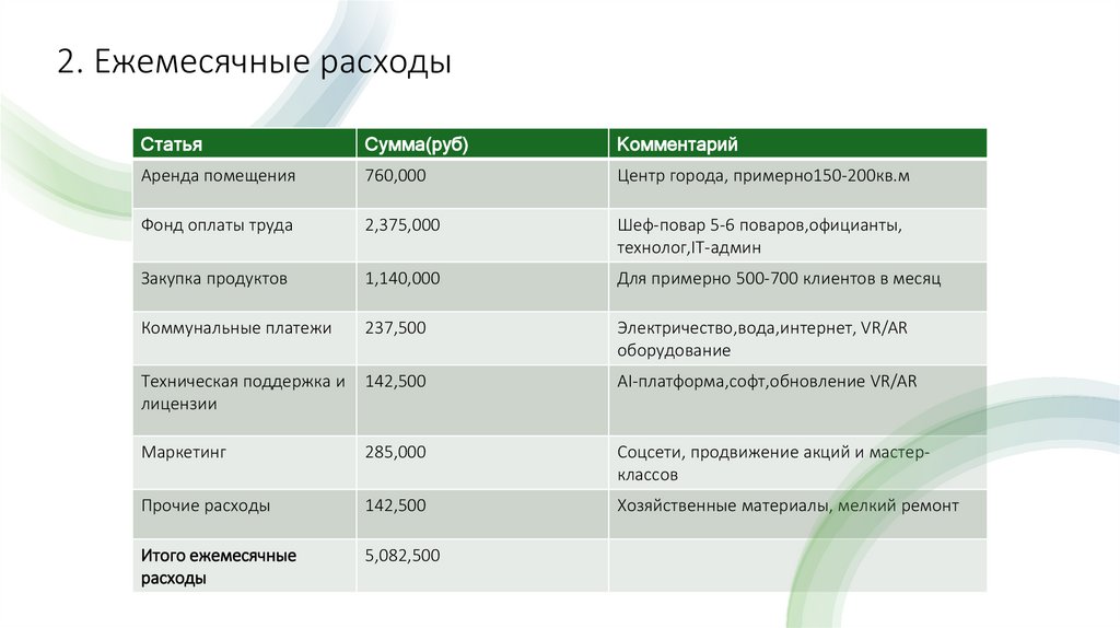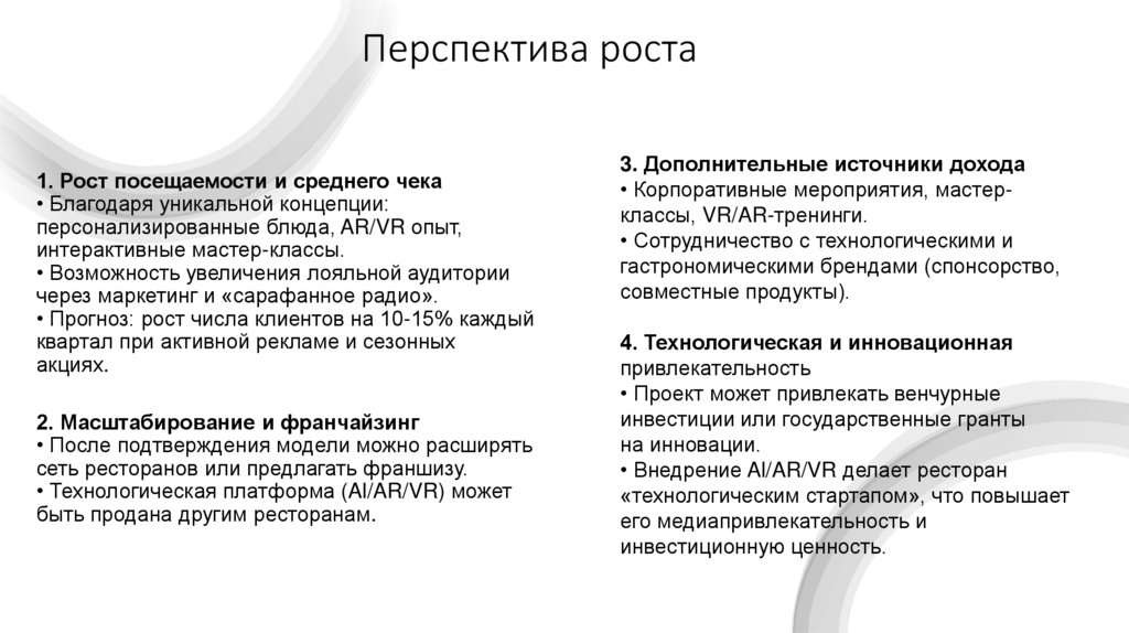 • Уникальная концепция: сочетание AI и AR/VR с гастрономией.