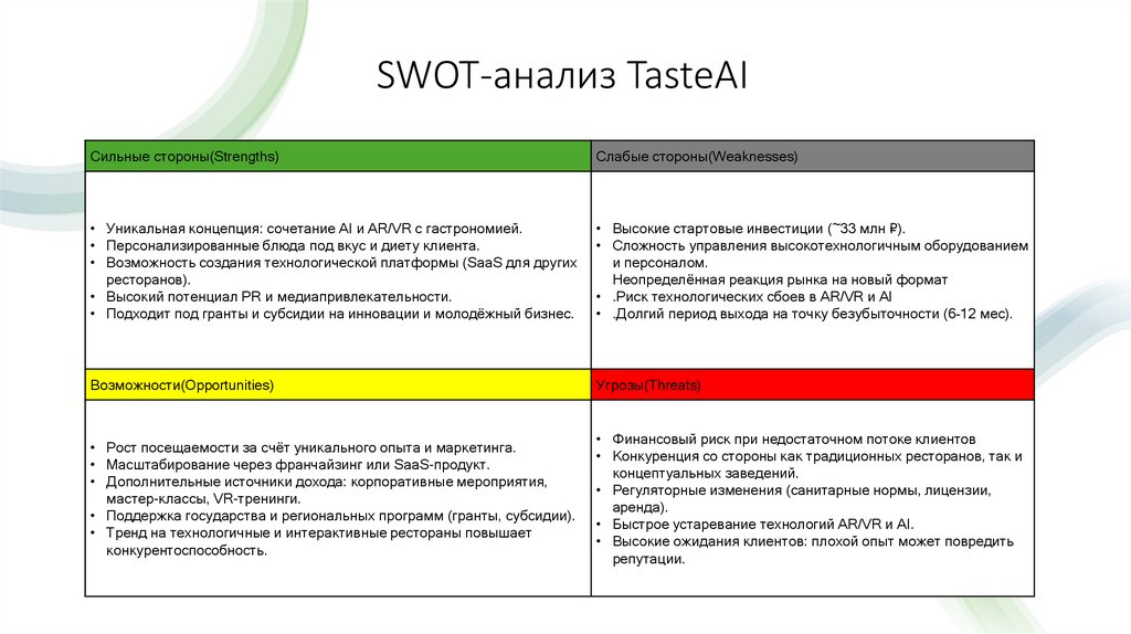 SWOT-анализ TasteAIСильные стороны(Strengths)