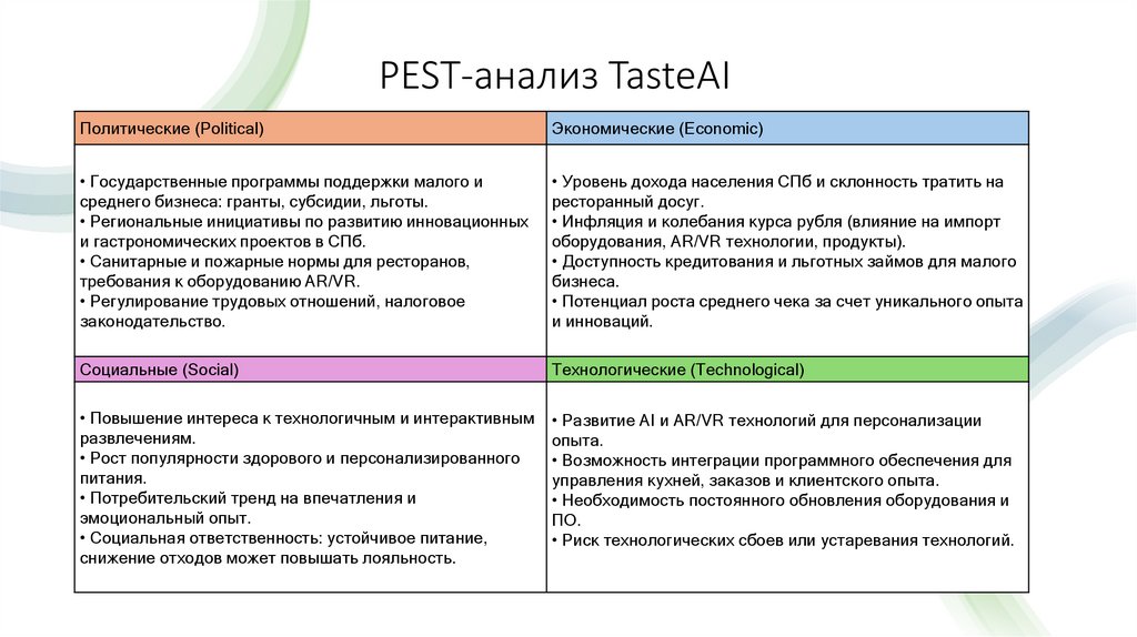 6. Финансовая модель TasteAl (Санкт-Петербург)