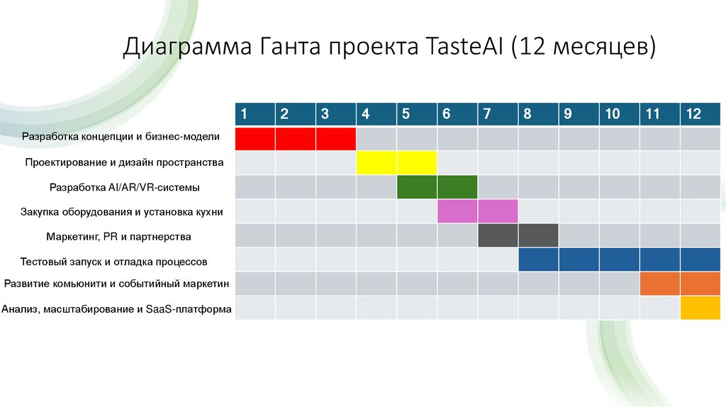 Диаграмма Ганта проекта TasteAI (12 месяцев)1