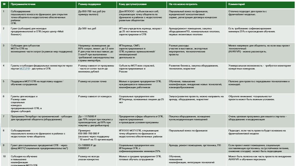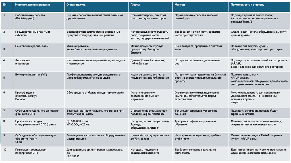 • Подходит под гранты и субсидии на инновации и молодёжный бизнес.