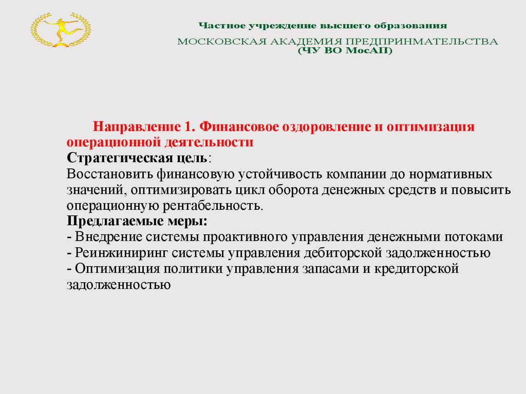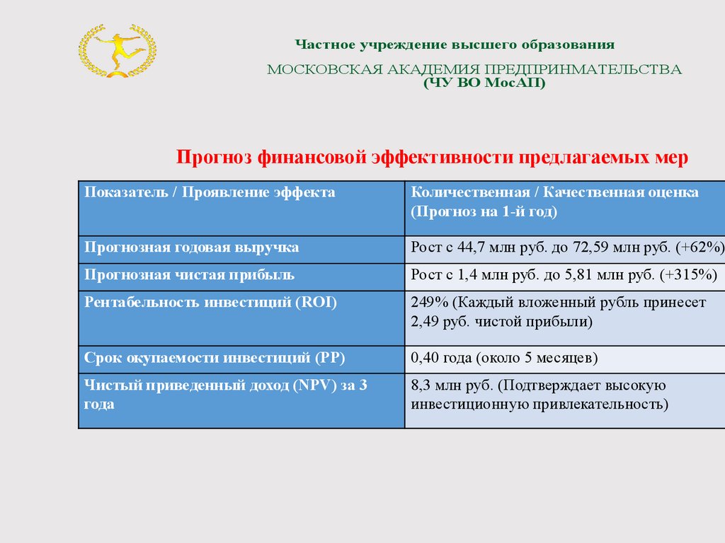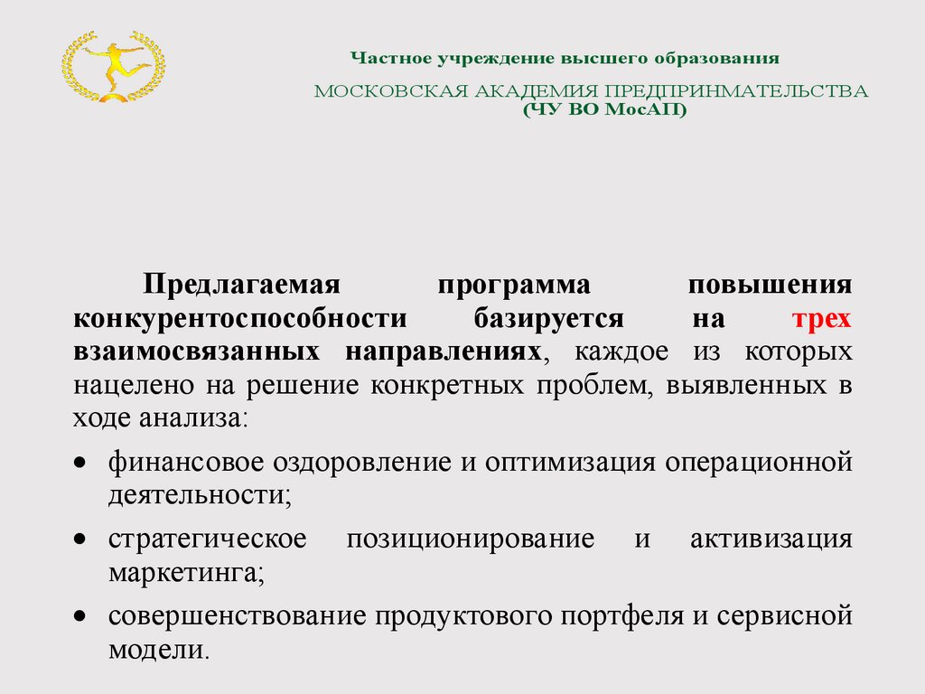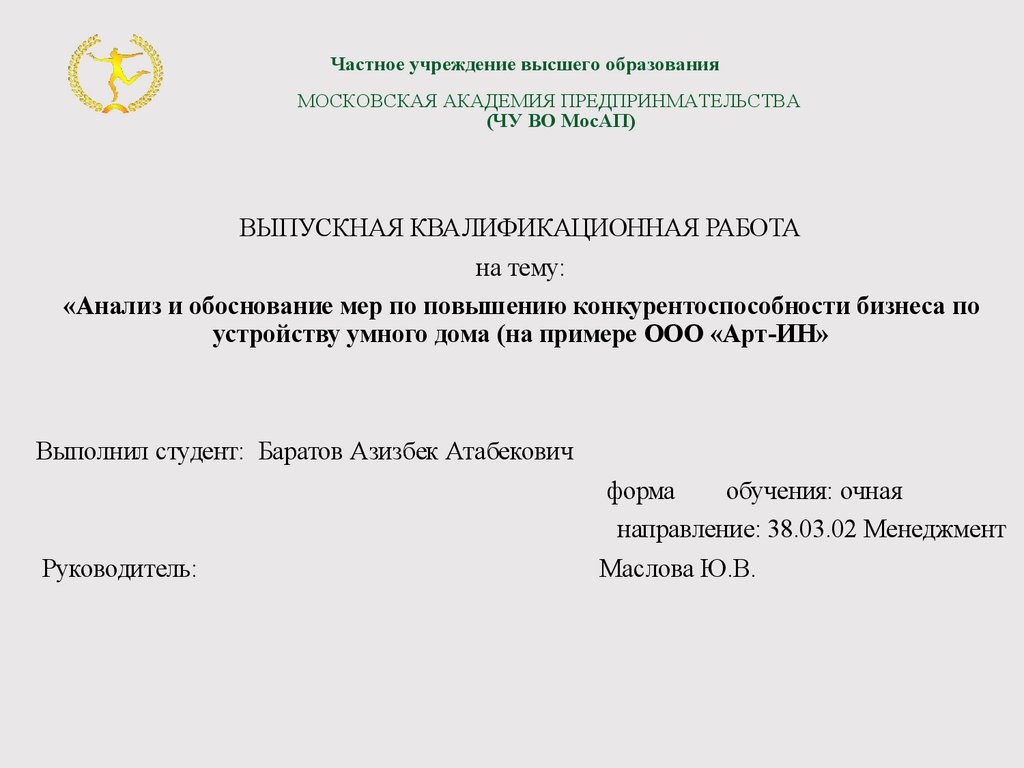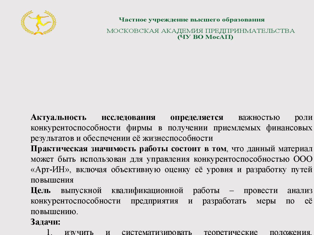 Частное учреждение высшего образованияМОСКОВСКАЯ АКАДЕМИЯ ПРЕДПРИНМАТЕЛЬСТВА