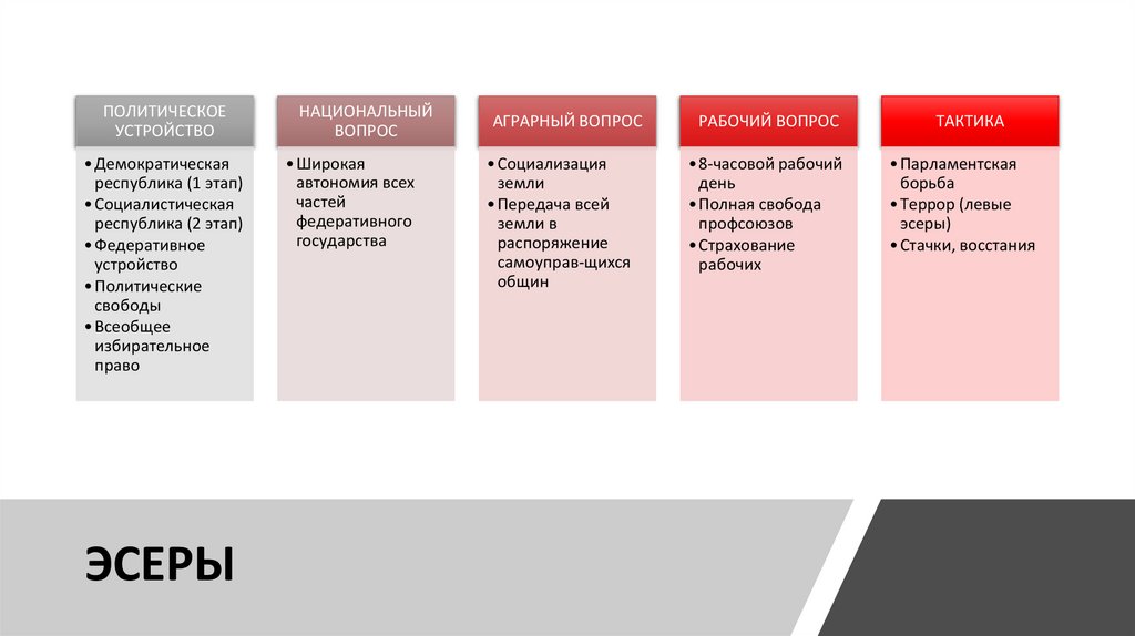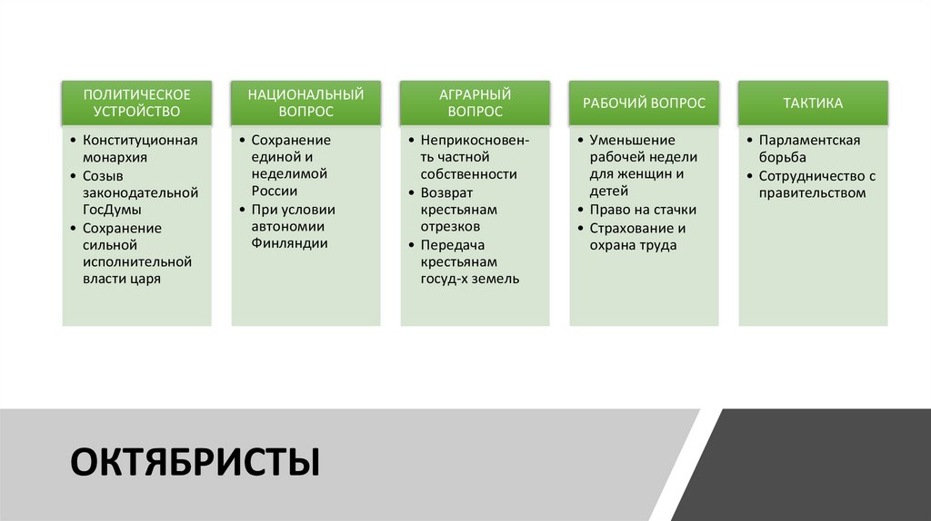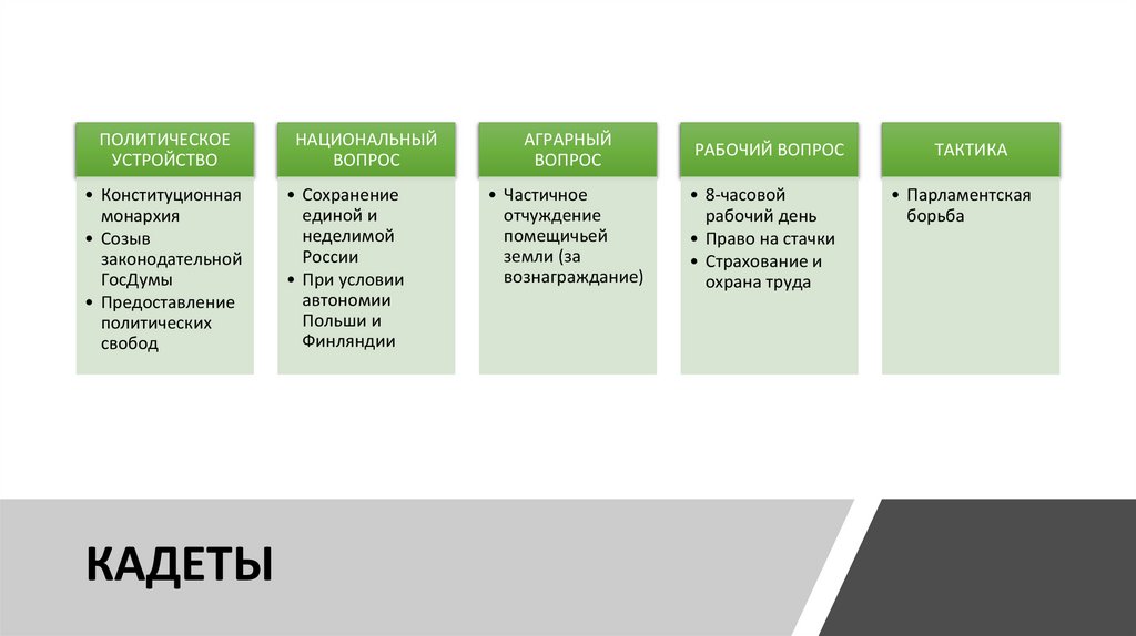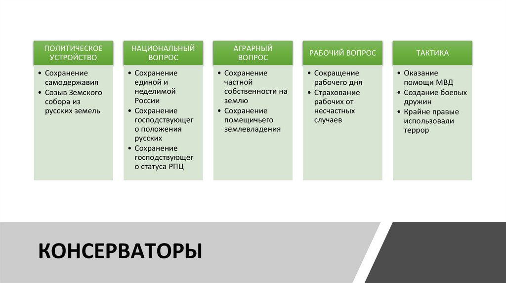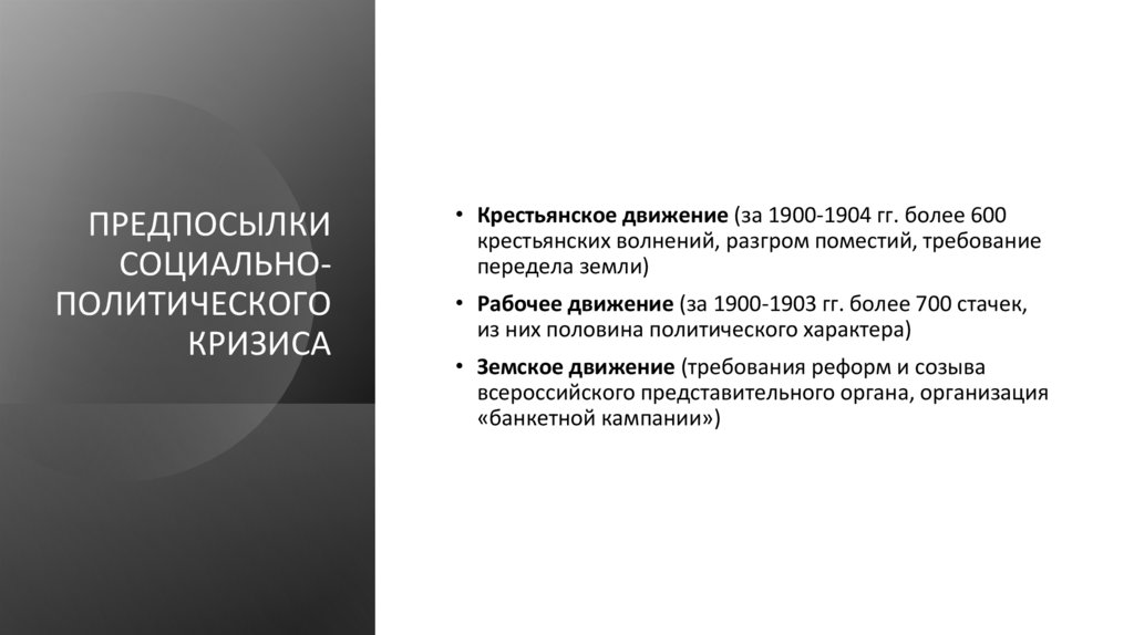 • Обострение социальных противоречий (дворяне-буржуазия, помещикикрестьяне, рабочие-буржуазия, буржуазия-царизм)
