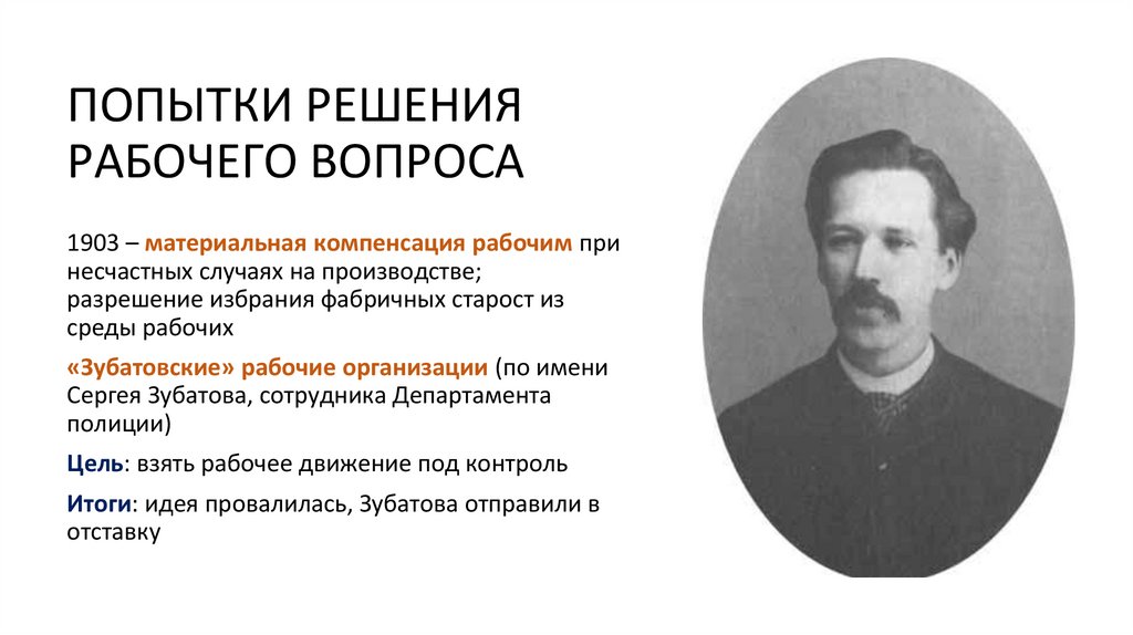 ПОПЫТКИ РЕШЕНИЯРАБОЧЕГО ВОПРОСА