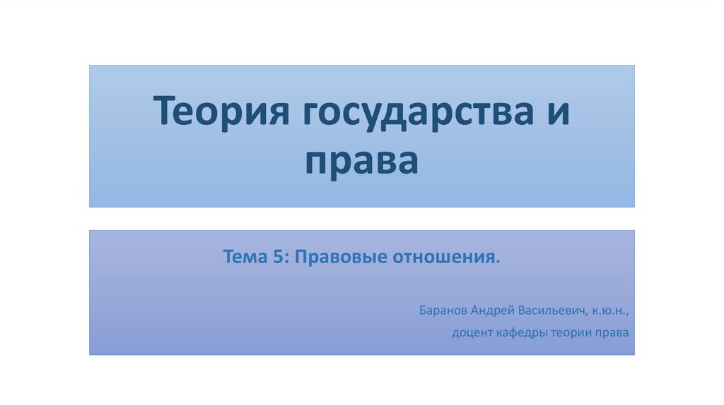 Тема 5: Правовые отношения.Баранов Андрей Васильевич, к.ю.н.,
