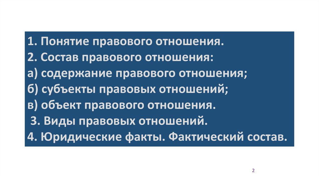 • Фактический состав – это совокупность юридических фактовнеобходимых для возникновения прекращения и изменения