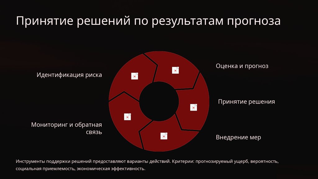Инструменты поддержки решений предоставляют варианты действий. Критерии: прогнозируемый ущерб, вероятность,