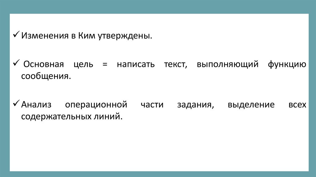 Изменения в Ким утверждены.Основная цель = написать текст, выполняющий функцию