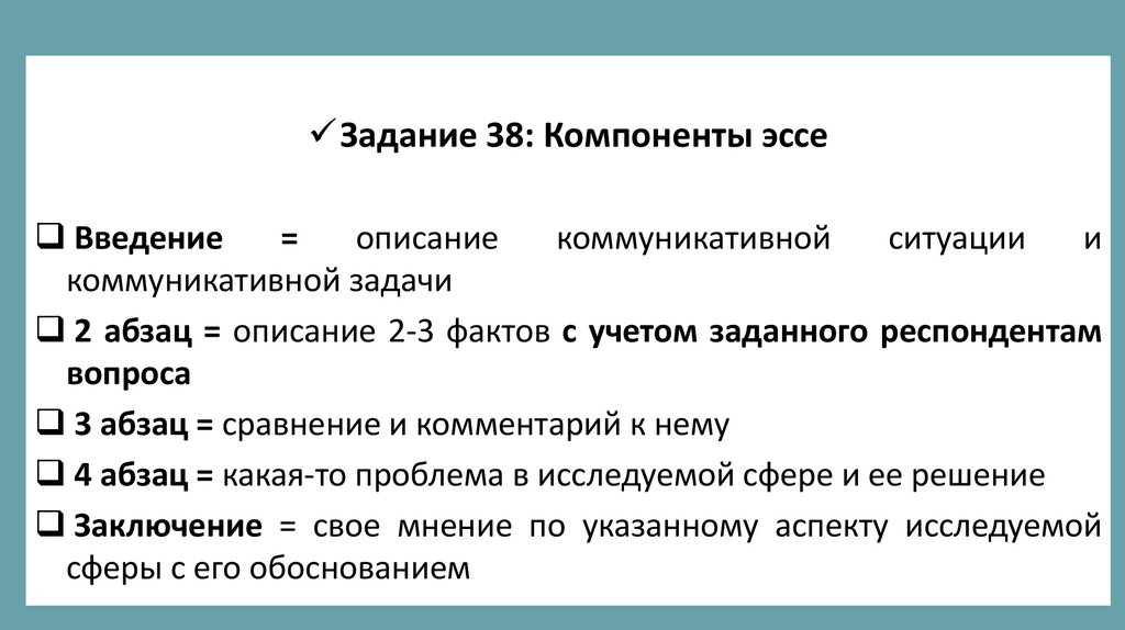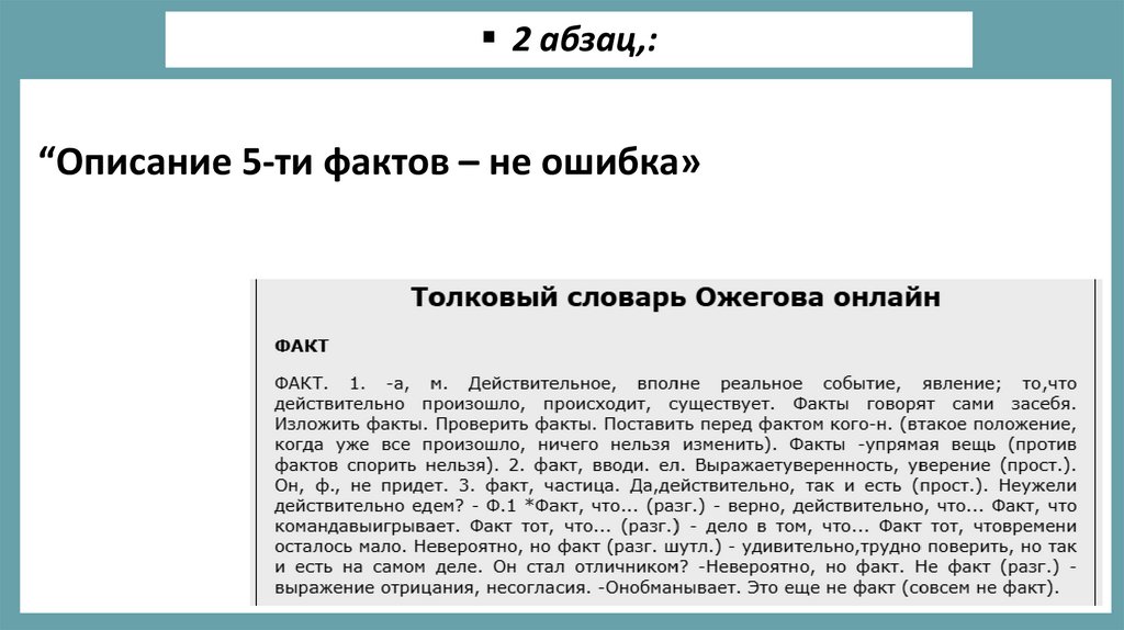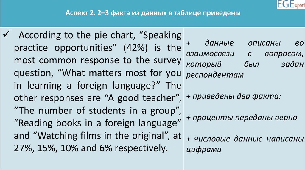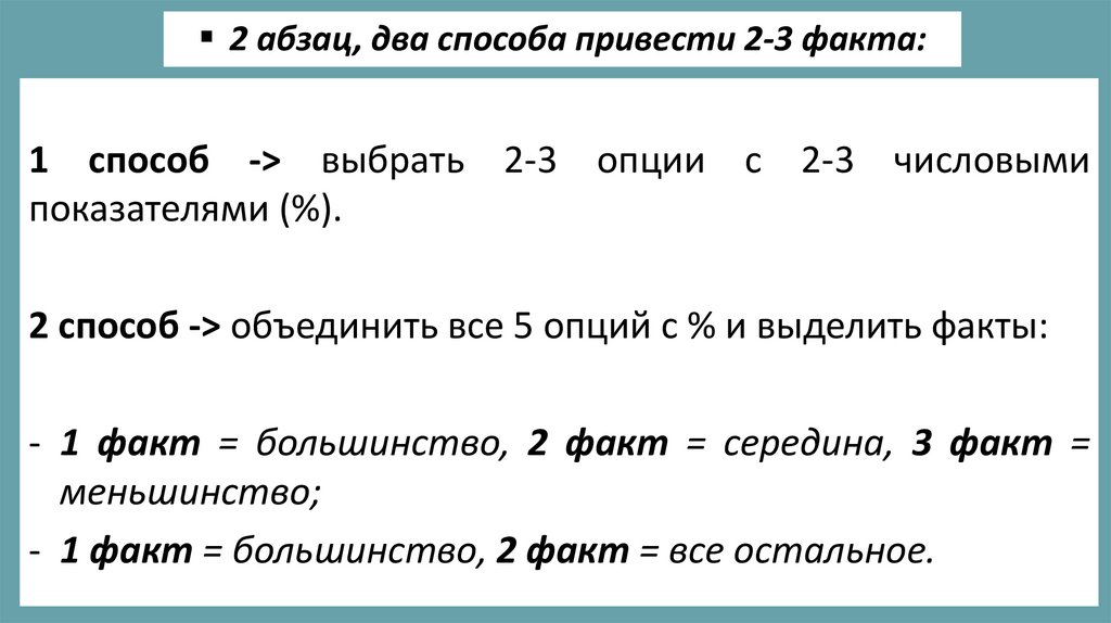 2 абзац = описание 2-3 фактов с учетом заданного респондентам