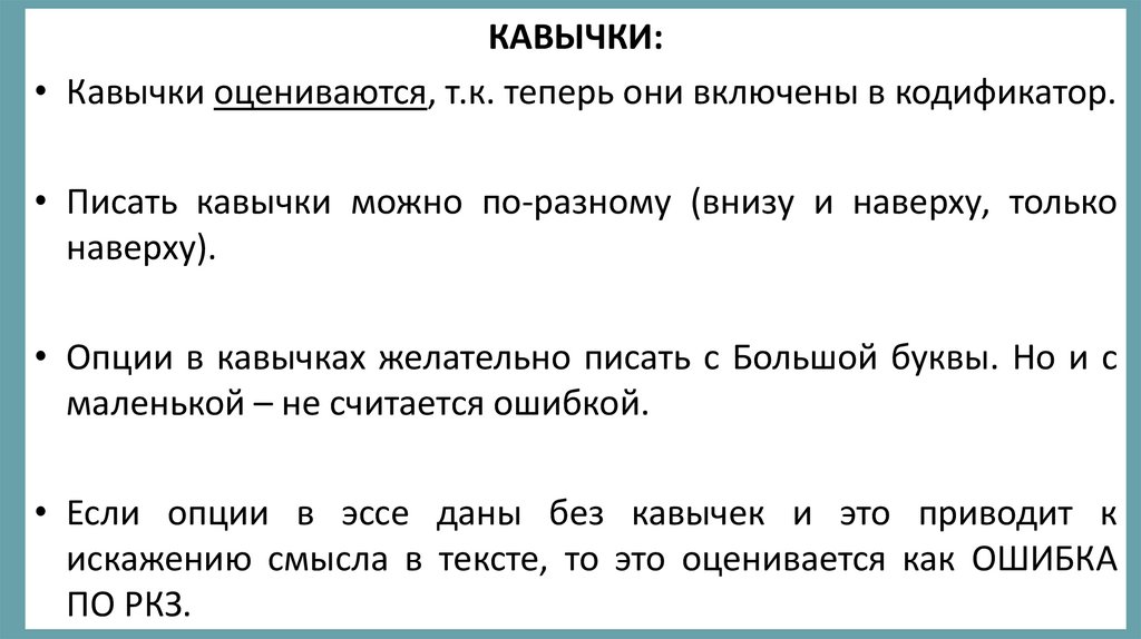 • Если опции в эссе даны без кавычек и это приводит к искажению смысла в тексте ->