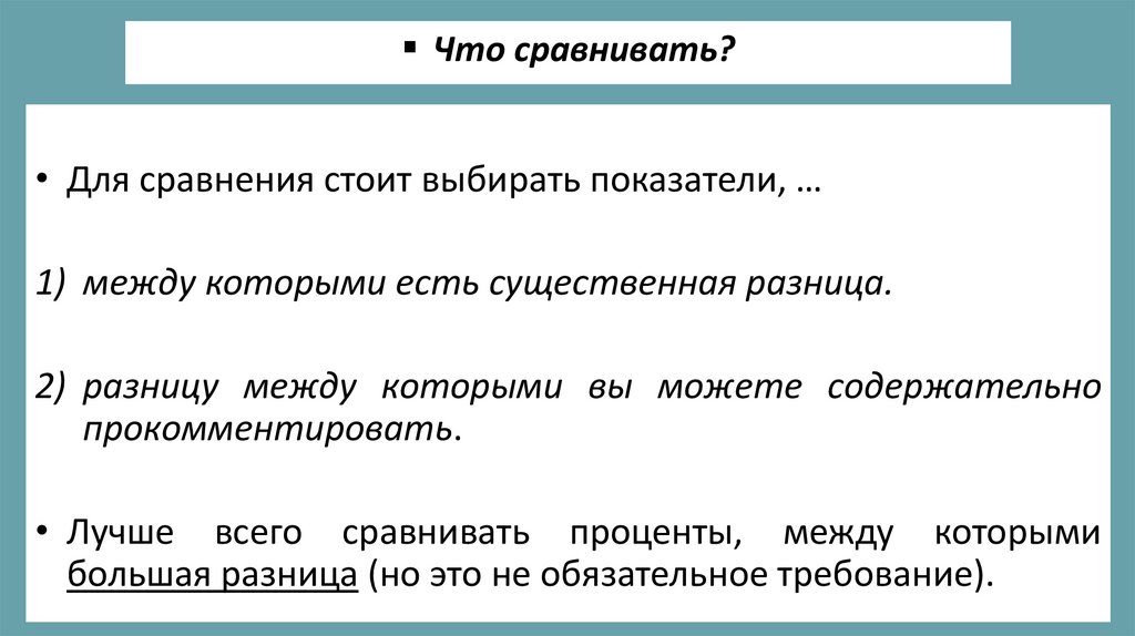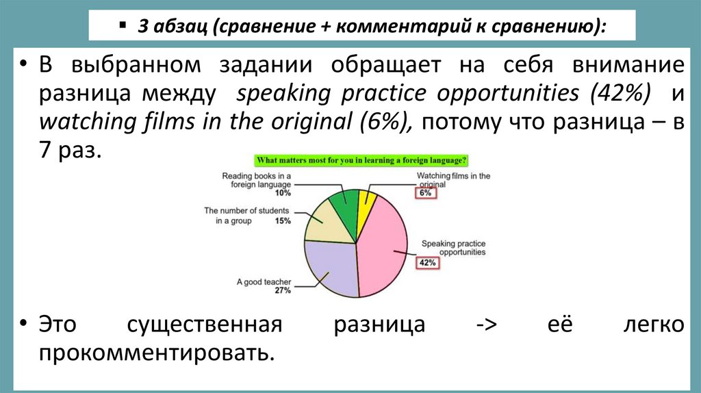 3 абзац: сравнение = …% vs …%, комментарий = … … …