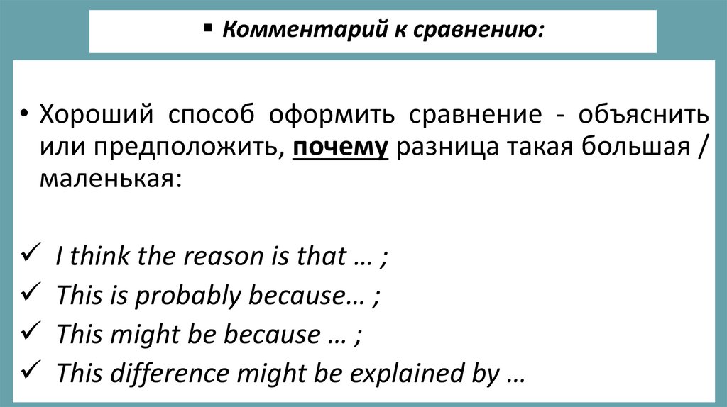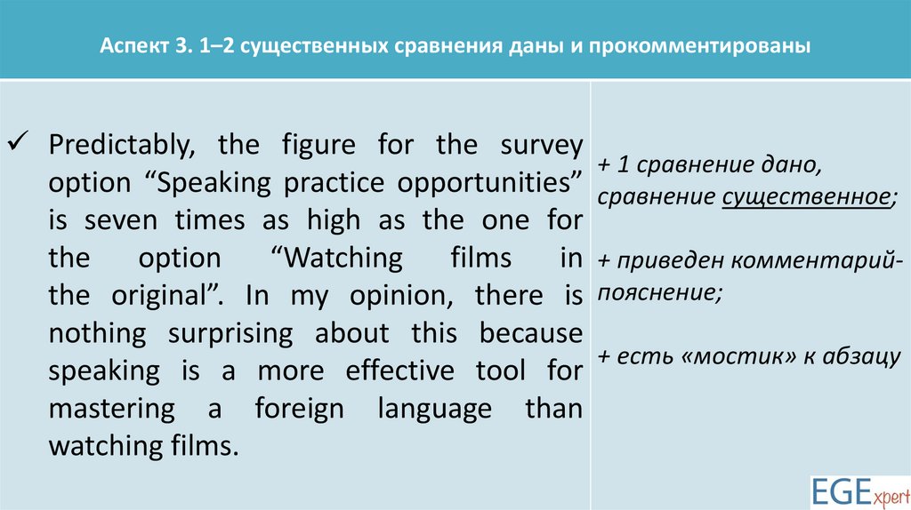 Аспект 3. 1–2 существенных сравнения даны и прокомментированыPredictably, the figure for the survey
