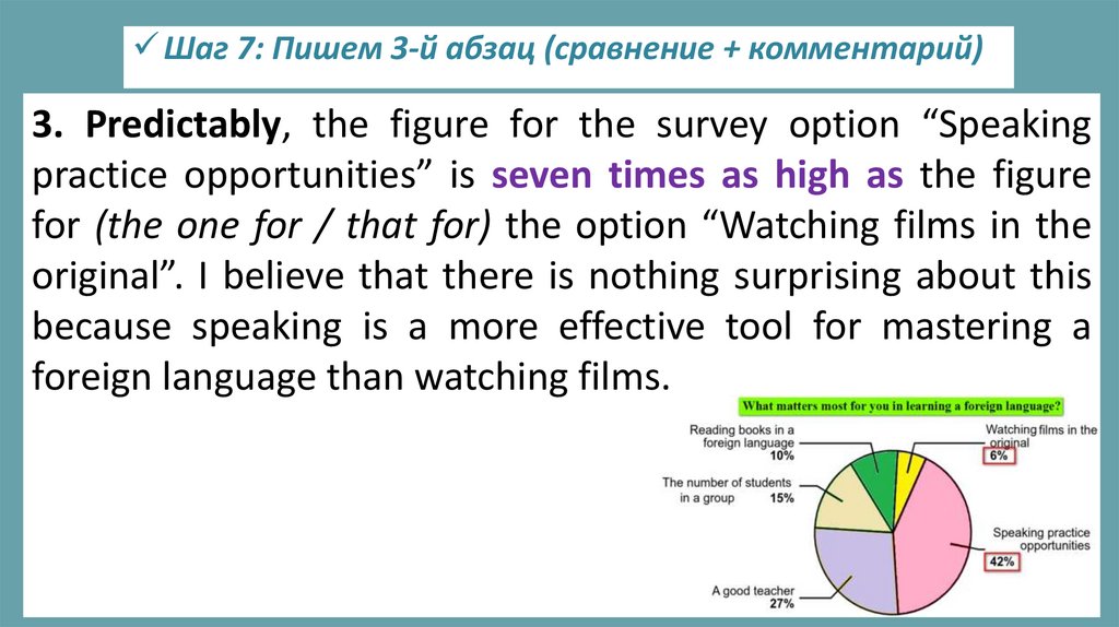 3. Predictably, the figure for the survey option “Speaking practice opportunities” is seven times as high