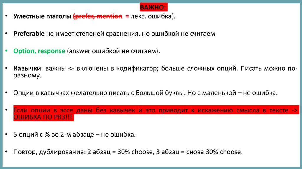 ВАЖНО:• Уместные глаголы (prefer, mention = лекс. ошибка).