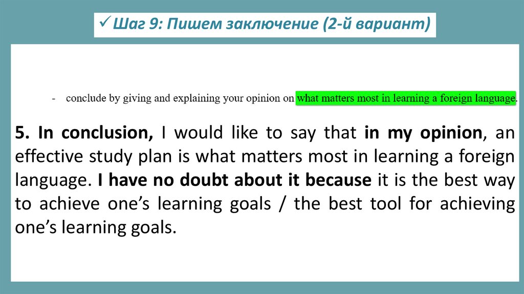5. In conclusion, I would like to say that in my opinion, an effective study plan is what matters most in
