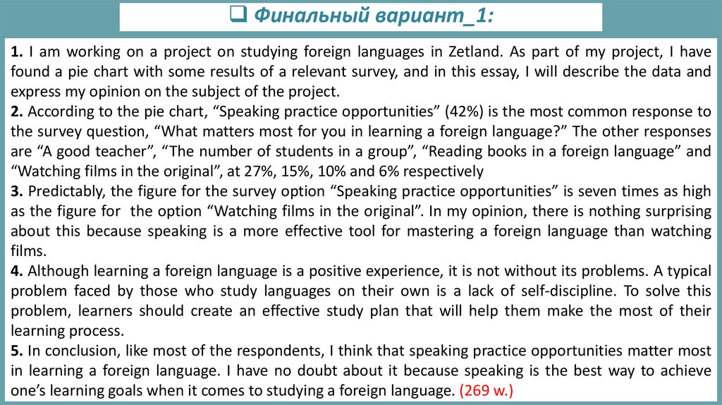 one’s learning goals when it comes to studying a foreign language. (269 w.)