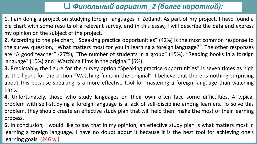 Финальный вариант_2 (более короткий):1. I am doing a project on studying foreign languages in Zetland. As part of my project, I have found a