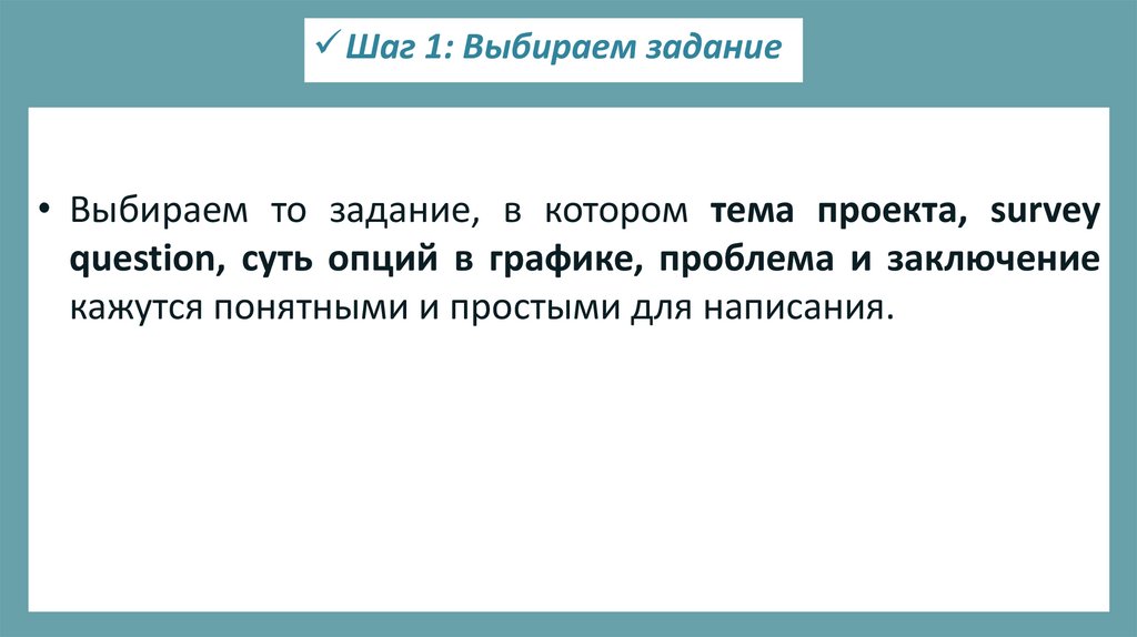 Шаг 1: Выбираем задание• Выбираем то задание, в котором тема проекта, survey