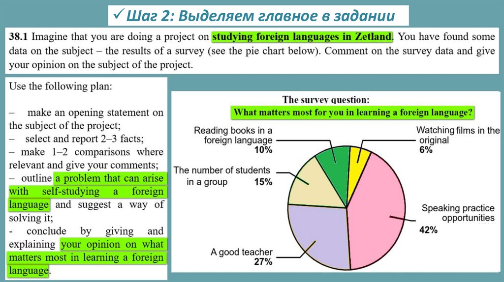 Задание:38.1 Imagine that you are doing a project on studying foreign languages in Zetland. You have found some