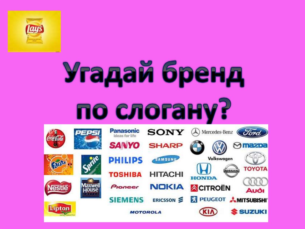 На экране вы увидите рекламный слоган(девиз), ваша задача назвать бренд
