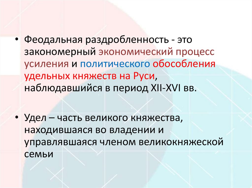 • Феодальная раздробленность - этозакономерный экономический процесс