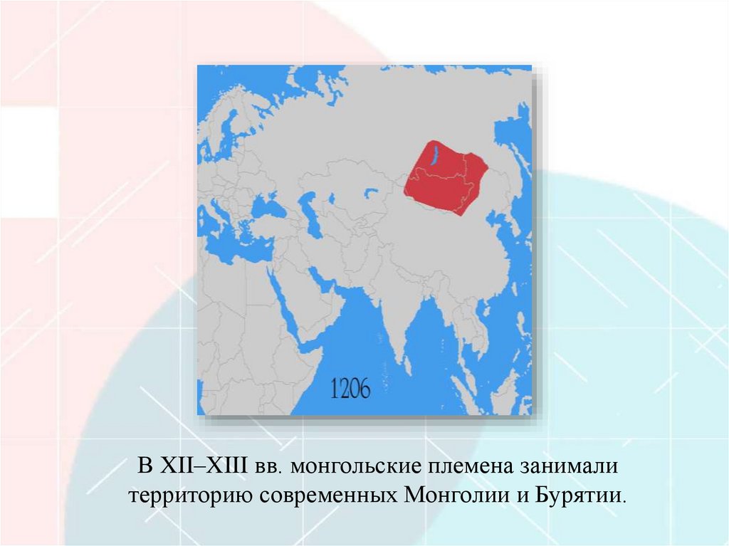 В XII–XIII вв. монгольские племена занималитерриторию современных Монголии и Бурятии.