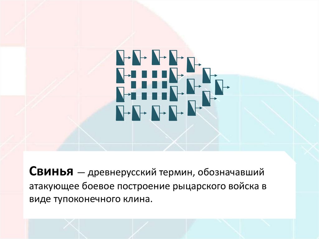 Свинья — древнерусский термин, обозначавшийатакующее боевое построение рыцарского войска в