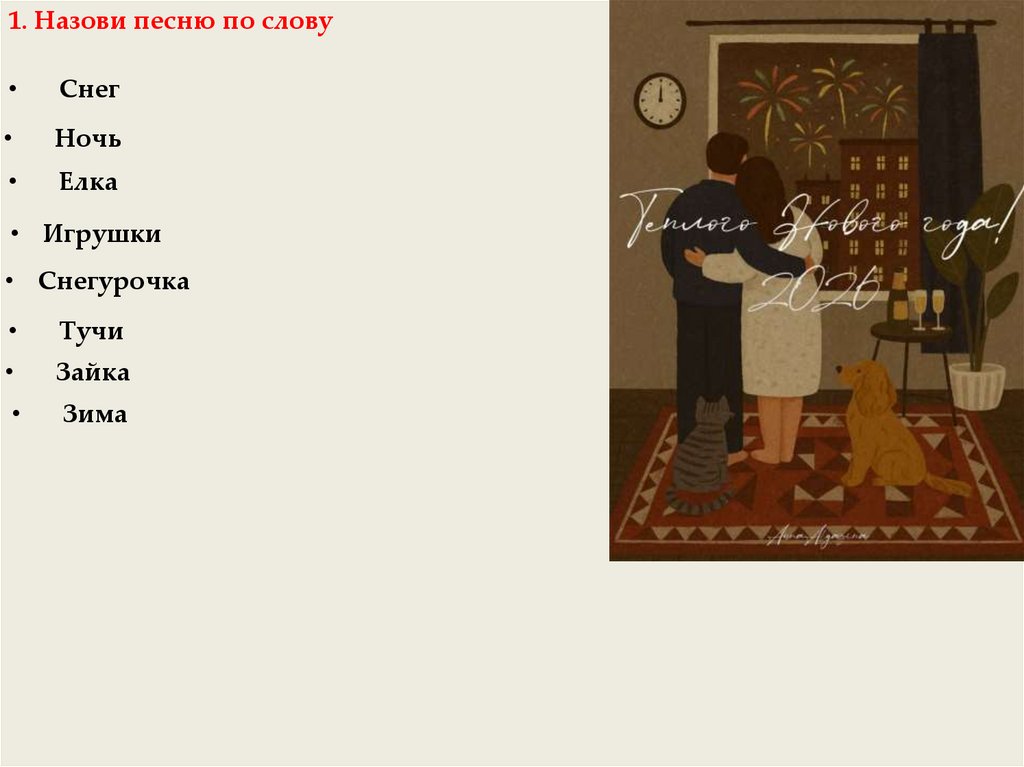 1. Назови песню по словуСнег