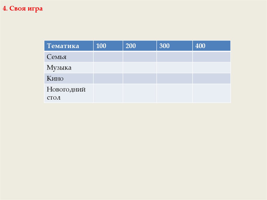4. Своя играТематика