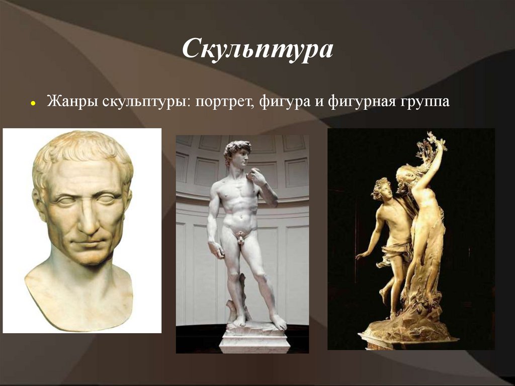 СкульптураЖанры скульптуры: портрет, фигура и фигурная группа
