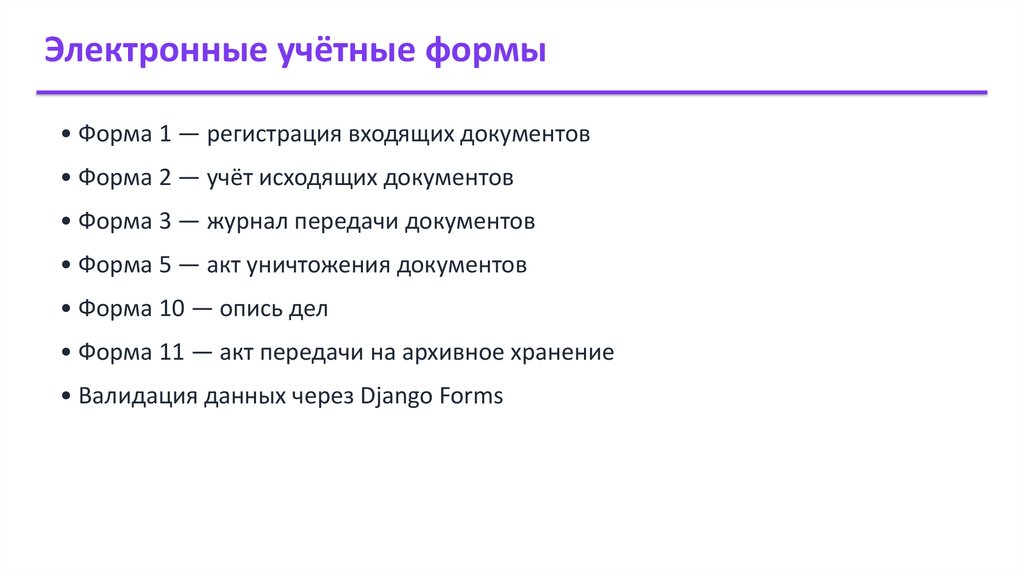 Электронные учётные формы• Форма 1 — регистрация входящих документов