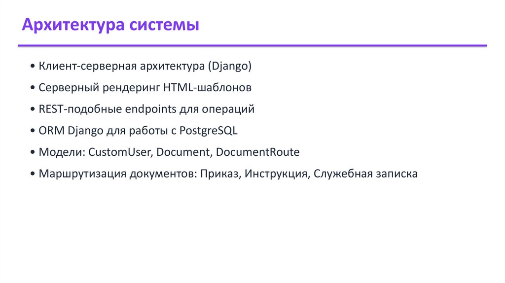 Архитектура системы• Клиент-серверная архитектура (Django)