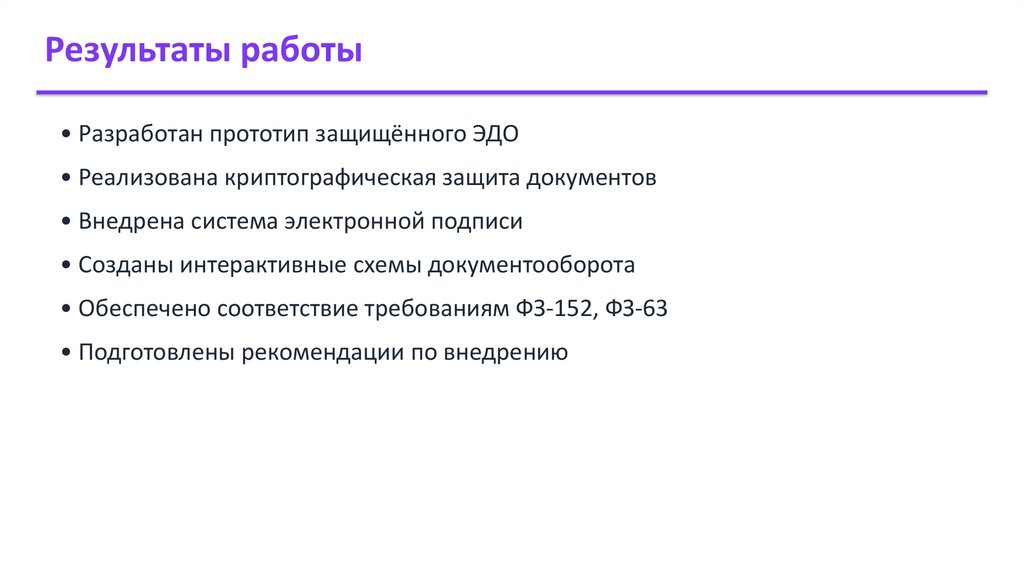 • Обеспечено соответствие требованиям ФЗ-152, ФЗ-63