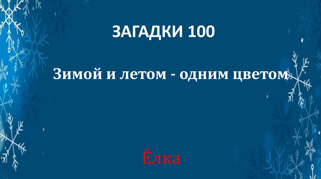 ЗАГАДКИ 100Зимой и летом - одним цветом