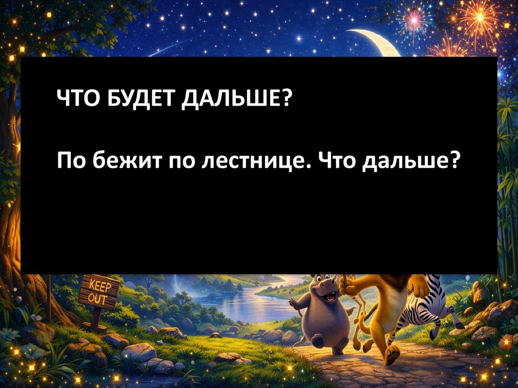 ЧТО БУДЕТ ДАЛЬШЕ?По бежит по лестнице. Что дальше?