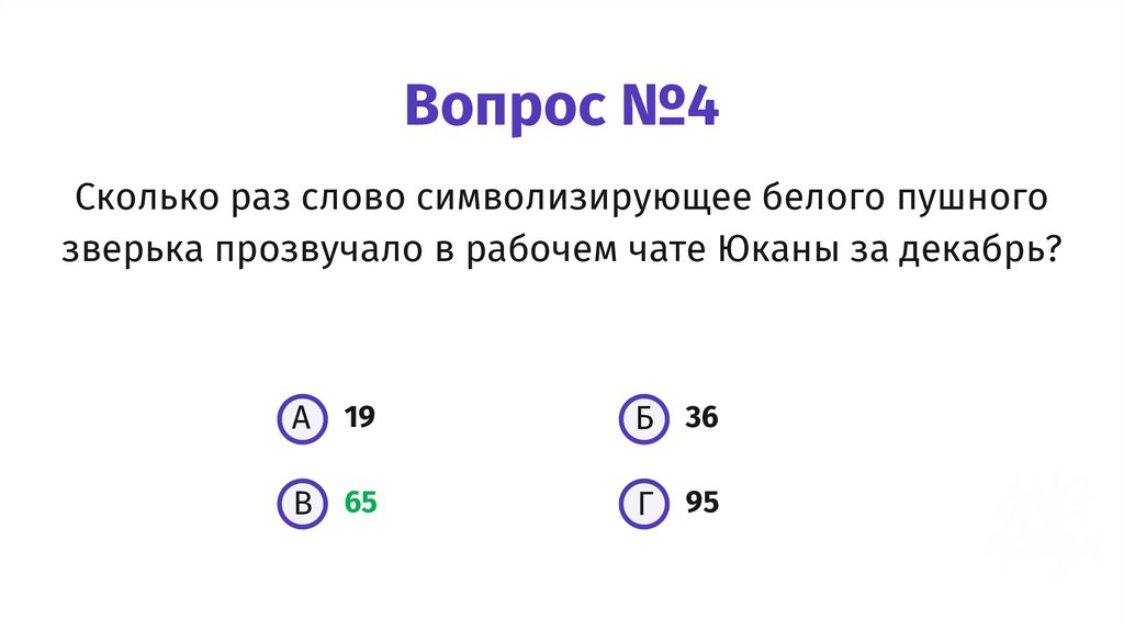 Вопрос №4Сколько раз слово символизирующее белого пушного