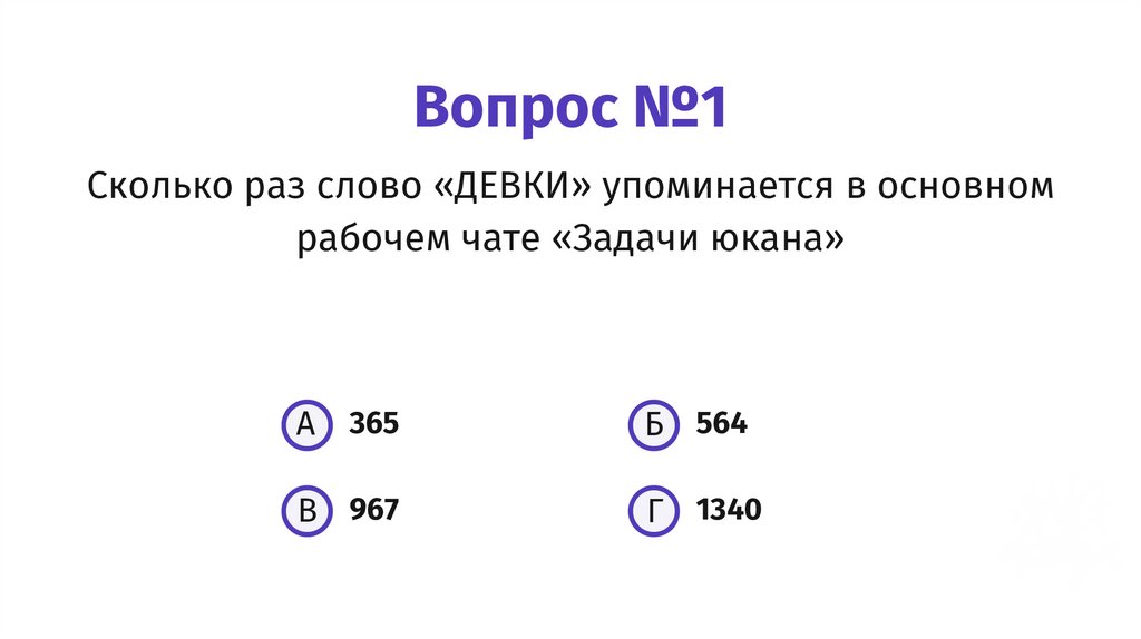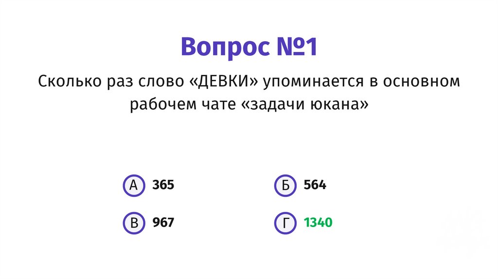Вопрос №1Сколько раз слово «ДЕВКИ» упоминается в основном