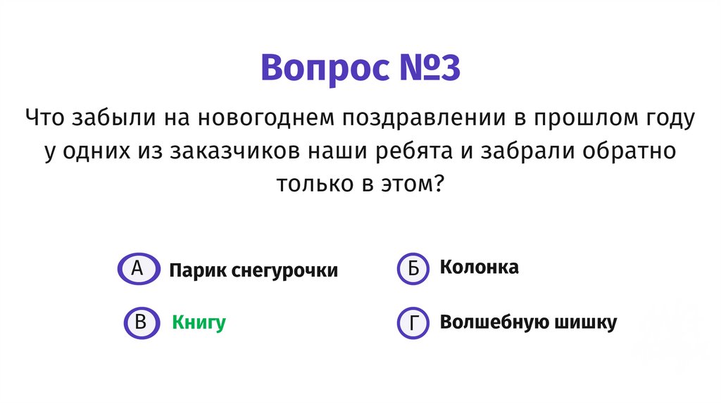 Вопрос №3Что забыли на новогоднем поздравлении в прошлом году